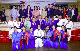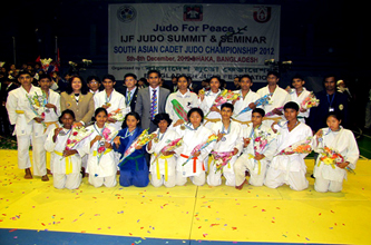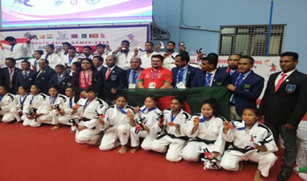 | সাউথ এশিয়ান ক্যাডেট জুডো চ্যাম্পিয়নশীপ–২০১২, ঢাকা,বাংলাদেশে অংশগ্রহনকারী পদক জয়ীদের সাথে বিকেএসপির পরিচালক প্রশিক্ষণ সহ কোচবৃন্দ। | ১৩তম সাউথ এশিয়ান গেমস ২০১৯ এ পদক প্রাপ্ত খেলোয়াড় এবং কোচ। |
